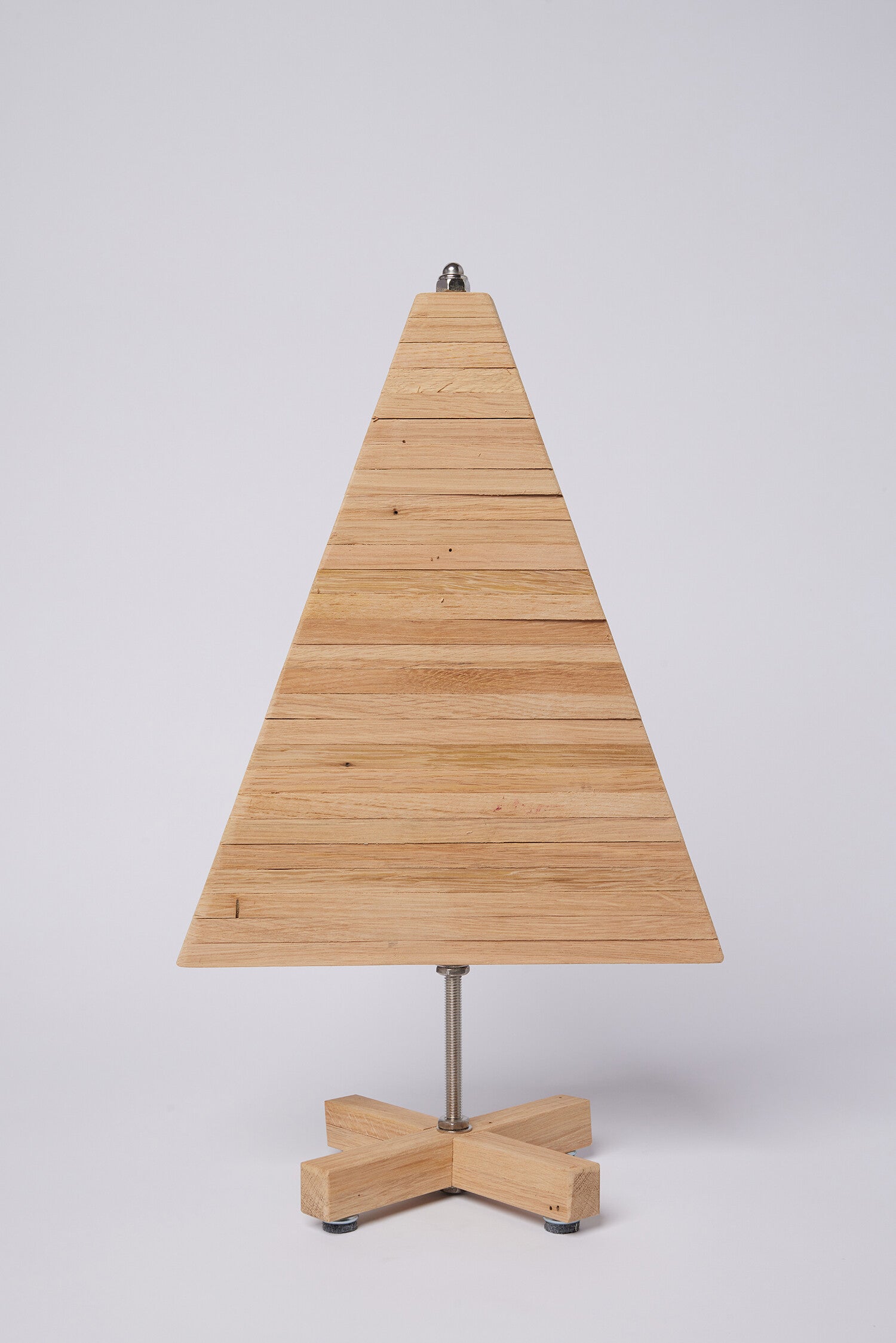 Dit is onze massief eiken kerstboom van +/- 50cm hoog. Met RvS onderdelen.